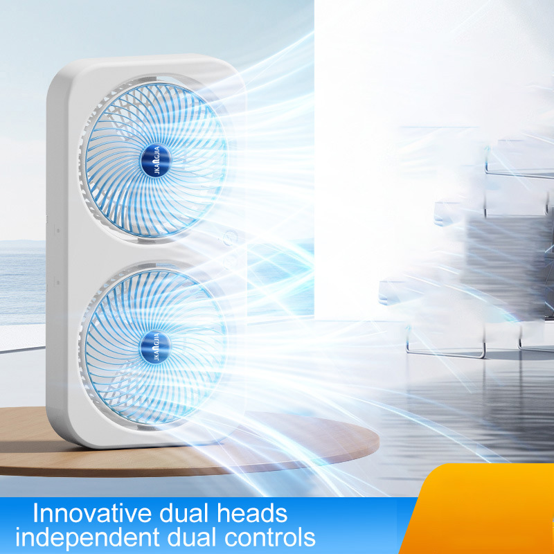 Dual-head fan design for a wider and stronger airflow coverage.